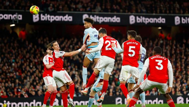 阿森纳也有扩大比分的机会,第37分钟,梅里诺将球分到左路,赖斯的传中刚好越过两名后卫,马杜埃凯的射门被挡出了底线。