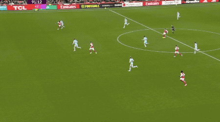 第83分钟,赖斯小腿不适坐在地上,无法坚持被约克雷斯换下。伤停补时阶段,梅里诺送出妙传,萨卡补刀,锁定胜局。